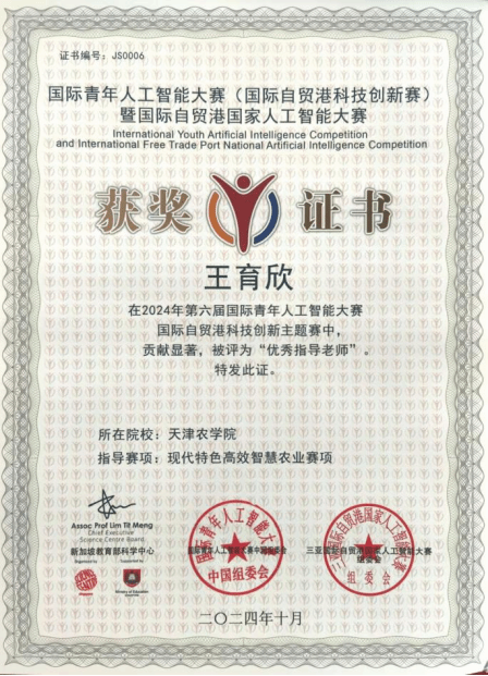 近日,365官网计算机与信息工程学院师生在第六届国际青年人工智能大赛国际自贸港科技创新主题赛暨第二届国际自贸港国家人工智能大赛中国赛区选拔赛中表现突出,本次师生们共参加了海洋科学与深海科技、现代特色高效智慧农业两个赛项,由王育欣教授指导的6支队伍共斩获一等奖2项和二等奖4项的骄人成绩,携手共同挺进国际总决赛,王育欣教授被评为“优秀指导教师”。