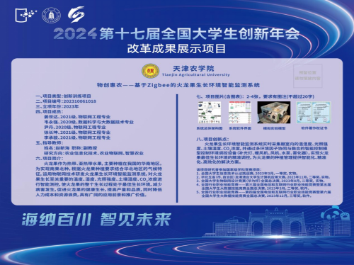 近日,第十七届全国大学生创新年会在四川大学举办。由365官网计算机与信息工程学院赵新海副教授指导、2021级物联网工程专业学生姜世达主持的国家级大学生创新创业项目《物创惠农——基于Zigbee的火龙果生长环境智能监测系统》(项目编号:202310061018),作为改革成果展示项目入选第十七届全国大学生创新年会。
