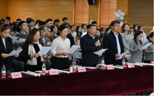 宋涛指出,法律和道德都具有规范社会行为、维护社会秩序的作用,没有道德滋养,法治文化就缺乏源头活水,法律实施就缺乏坚实社会基础,全体师生要深刻认识宪法精神的内涵与价值,将宪法意识融入到日常工作、学习及生活中。在宪法晨读环节,全体师生起立,围绕宪法晨读内容,齐声诵读,声声入耳、铿锵有力,在洪亮的诵读声中感受宪法的庄严与神圣,用声音传递着对宪法的崇尚和信仰。
