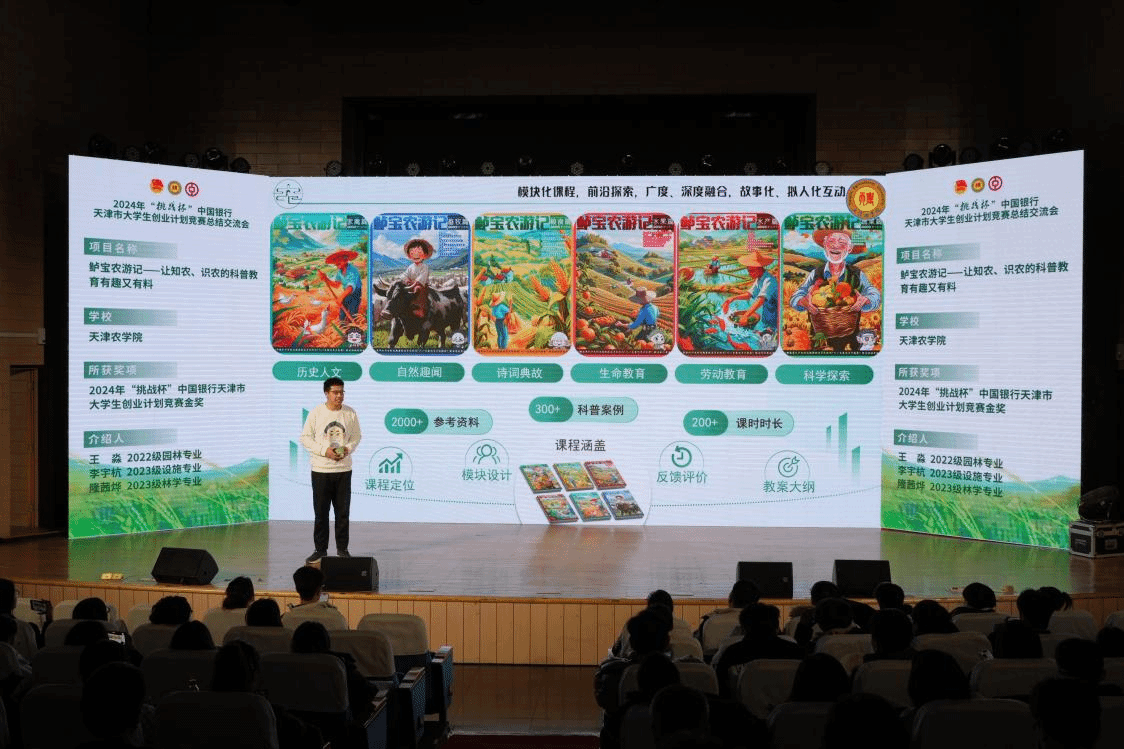 会议对本届赛事进行了全面回顾和总结,并为获得挑战杯、优胜杯、优秀组织奖的单位进行颁奖。会议期间组织了项目成果展,展示了在第十四届“挑战杯”中国大学生创业计划竞赛中获得金、银、铜奖的项目以及2024年“挑战杯”中国银行天津市大学生创业计划竞赛金奖项目。南开大学、天津大学等5所高校获奖项目团队进行路演展示。365官网《鲈宝农游记-让知农、识农的科普教育有趣又有料》项目进行现场展示。