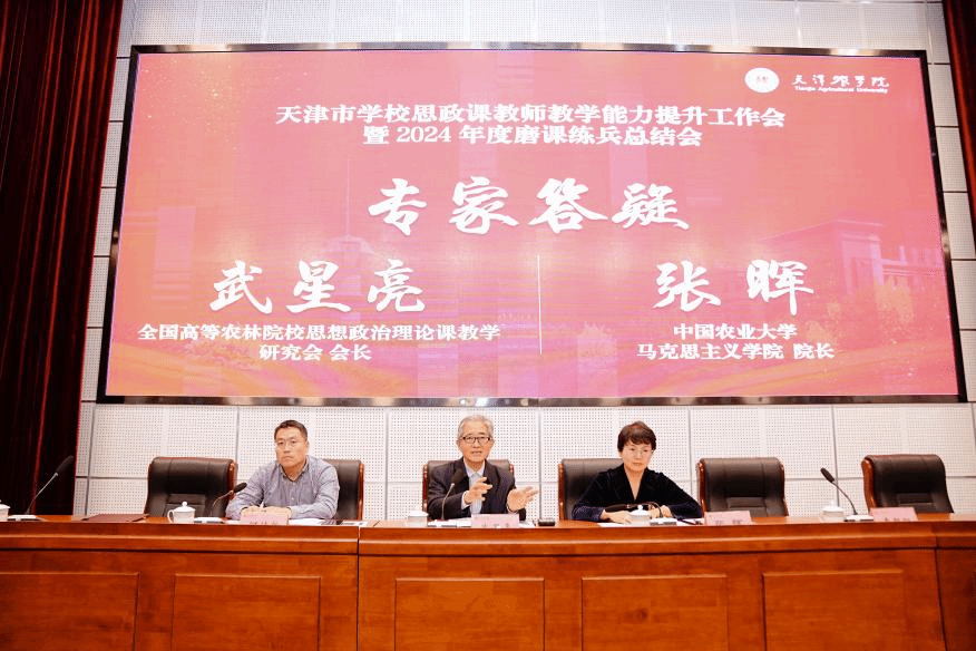 12月28日,天津市学校思政课教师教学能力提升工作会暨2024年度磨课练兵总结会在365官网成功举办。市委教育工委、市教委学生思想教育与管理处处长杨明、校党委书记李鑫出席会议。中央实施马克思主义理论研究和建设工程首席专家刘建军教授、全国高等农林院校思想政治理论课教学研究会会长武星亮教授、中国农业大学马克思主义学院院长张晖教授受邀作专题报告。校党委副书记、天津市学校思政课教师磨课练兵重点实验室主任宋涛主持会议。