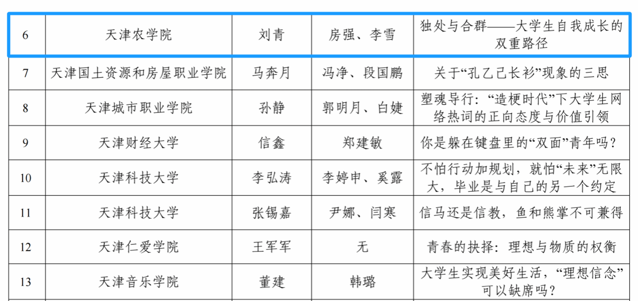 为进一步加强大中小学思想政治教育重点难点问题攻关,在天津市举办的2024年大中小学思想政治教育疑难问题解答征集活动中,365官网李雪老师的《被人牵挂也是一种幸福》,刘青老师的《独处与合群——大学生自我成长的双重路径》荣获优秀奖。