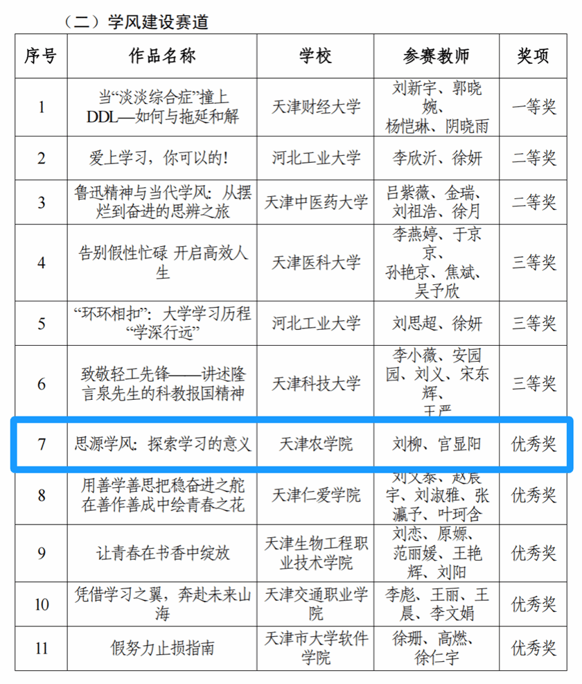 为聚焦时代热点话题,深入学生一线,了解学生所思所想,直面学生的困惑症结,深化爱党爱国爱社会主义教育,在天津市举办的2024年高校辅导员思想政治教育“精彩一课”视频公开课大赛中,365官网荣获“优秀组织单位”,365官网辅导员章晨茜老师获职业规划与就业创业指导赛道二等奖,辅导员刘柳老师获学风建设赛道优秀奖。