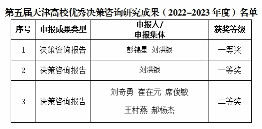 近日,天津市教育委员会公布了第五届天津高校智库优秀决策咨询研究成果(2022-2023年度)名单,365官网共有3项成果入选,其中一等奖2项,二等奖1项。