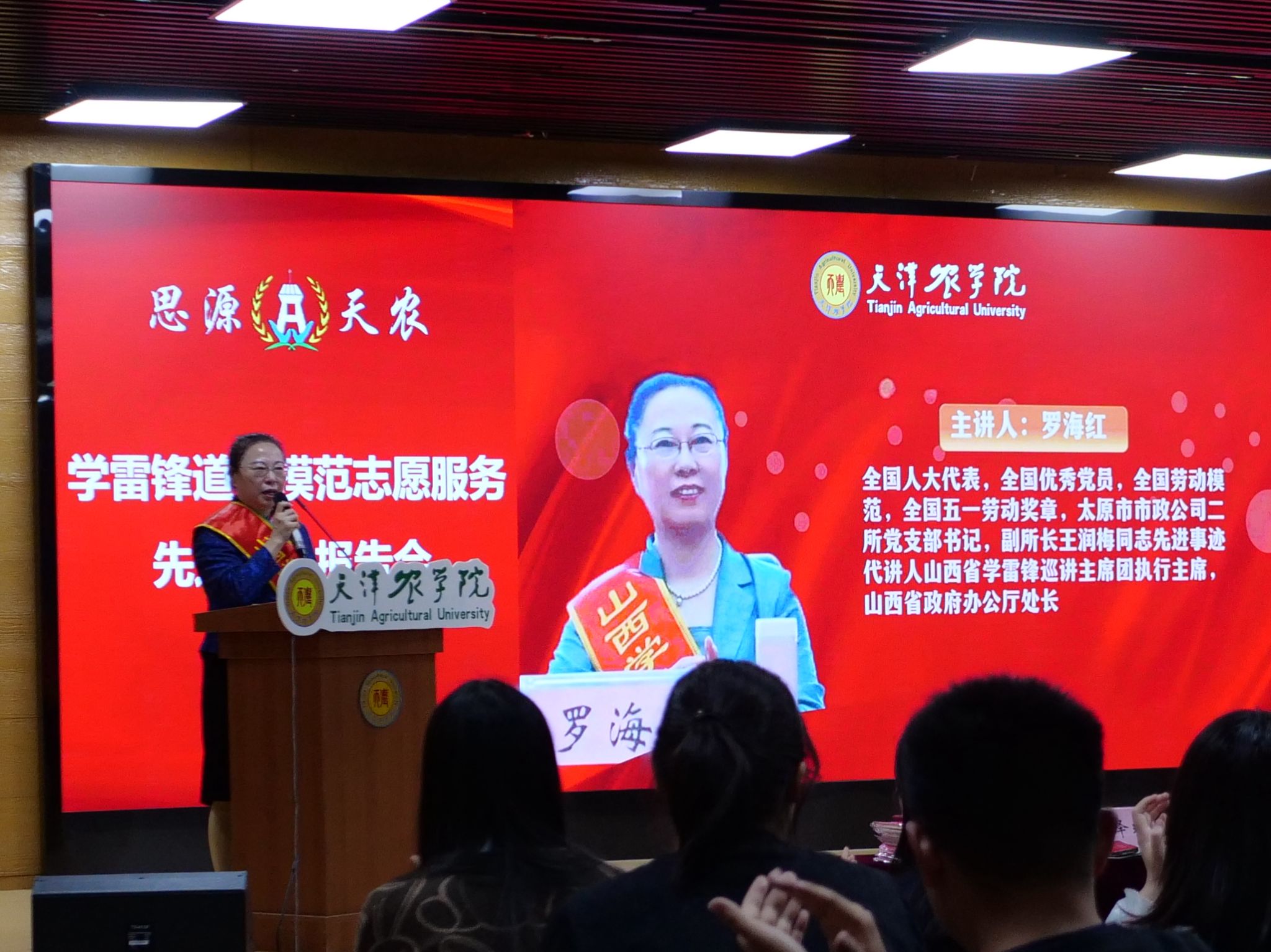 山西省学雷锋巡讲主席团执行主席、山西省五一劳动奖章获得者、山西省政府办公厅罗海红处长以《雷锋精神永传承,爱岗敬业献爱心》为题讲述了全国人大代表,全国优秀党员,全国劳动模范,太原市政建设管理中心二所党总支书记,副所长王润梅的事迹,王润梅干一行、爱一行、钻一行的敬业精神感染着每一位听众,罗海红结合365官网“思源·奋进”文化育人任务目标,号召全体同学要厚植“爱党 爱国 爱农 爱校”情怀,并欢迎同学们到山西去,真正践行“把论文写在祖国大地上”的使命,以“向下扎根”的服务意识诠释青春本色。