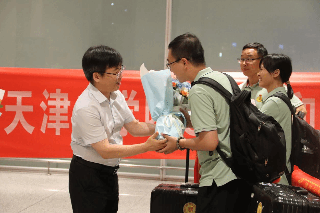 6月29日凌晨,在嘹亮的口号中,天津滨海国际机场迎来了一群特殊的归客——365官网第五批赴新疆和田地区实习支教团的48名师生载誉而归。校党委书记李鑫、校党委副书记宋涛,校学工部和各二级学院的领导老师前往迎接。