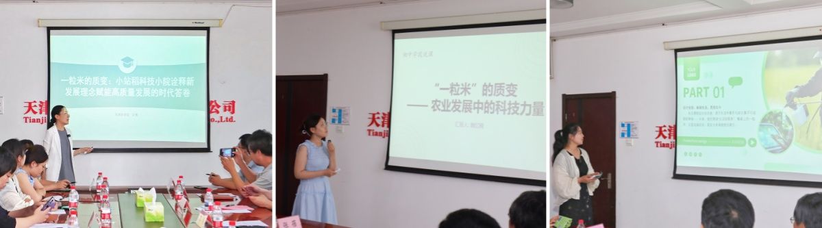 在“协同备课·构建一体化实践课程”环节,项目组成员365官网马克思主义学院艾博老师、宝坻三中魏忆楠老师、宝坻区朝霞路小学董京老师分别以“一粒米的质变”为主题,重点围绕“如何实现一体化”进行说课。三位老师分别结合各自学段的教学实际,从教学目标设定、教学内容选取、教学方法运用等多个维度进行了详细阐述。