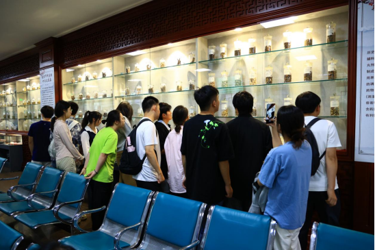 在百草堂,天津市中医药研究院附属医院药学部主任药师孙浩为师生讲解了中医药文化,师生们近距离参观了多种珍贵中药材,踊跃提问,对中医药文化表现出浓厚兴趣。