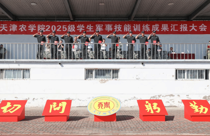 “分列式——开始!”随着军训军事指挥员口令下达,各连队分列式方阵队伍步伐整齐划一、口号嘹亮依次经过主席台,“严格训练、严格要求”“思源奋进、青春报国”的呐喊响彻云霄,参训学员挺拔的身姿与坚毅的眼神,尽显昂扬风貌,展现了2025级天农学子良好的精神风貌。