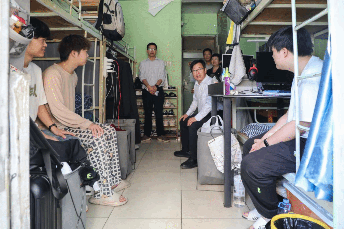 在学生宿舍区,检查组与学生亲切交谈,询问学习生活情况,提醒增强安全意识,注意交通、人身及财产安全,离校前妥善保管好物品、关闭电源水源、锁好门窗,叮嘱宿舍管理人员加强假期留校学生管理服务,落实值班巡查制度。
