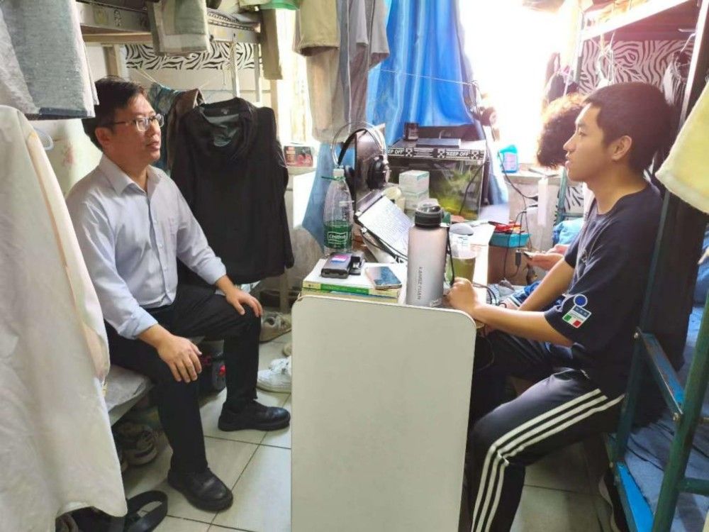 在学生宿舍,校领导细致关心同学们的生活起居,在与同学们的亲切交流中,校领导勉励大家要珍惜韶华,科学规划未来,将个人职业发展融入时代洪流。声声叮嘱,关乎出行安全、用电规范与生活习惯,背后是学校对学生生命安全与健康成长的高度负责,体现了全员、全程、全方位的“三全育人”工作理念。