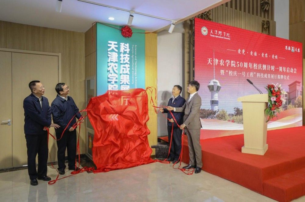 仪式上,金危危、宋涛、张继东和天津凯派文化传媒有限公司总经理康凯共同为科技成果展厅揭牌。作为学校迎接50周年校庆活动的“一号工程”,展厅的启用不仅标志着学校在科研创新道路上迈出了坚实的一步,更象征着为服务建设农业强国国家战略、推动我市打造现代都市农业升级版目标又贡献了一份“天农”力量。