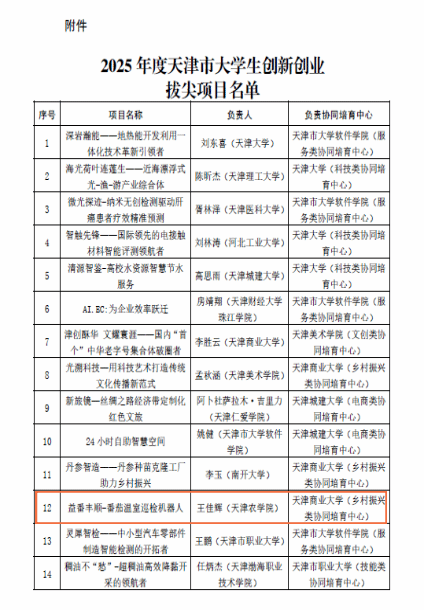 天津市大学生创新创业拔尖项目由市委教育工委、市教委设立,旨在培养和提高大学生创新、创意、创造、创业的意识和能力,助力高校就业创业教育、创业实践活动高质量发展,培育具有天津特色的高质量创新创业成果。