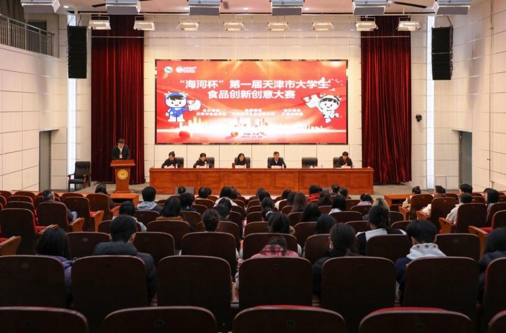 大赛以“创新赋能食品产业,创意点亮健康生活”为核心,搭建了校际交流、校企协同的优质平台。天津市食品学会理事长陈娟、天津食品集团有限公司运营部部长魏巍、天津食品集团有限公司科技部副部长李超、天津海河乳品有限公司副总经理蒲慧颖、天津海河乳品有限公司研发部副部长张海娇五位专家担任评委,来自天津大学、天津科技大学、天津商业大学等6所院校的24支参赛队伍同台竞技。