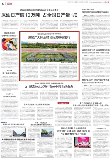 2024年9月4日,《天津日报》报道365官网举行中国人民抗日战争暨世界反法西斯战争胜利79周年纪念日活动,激励广大师生铭记历史、缅怀先烈、砥砺前行。