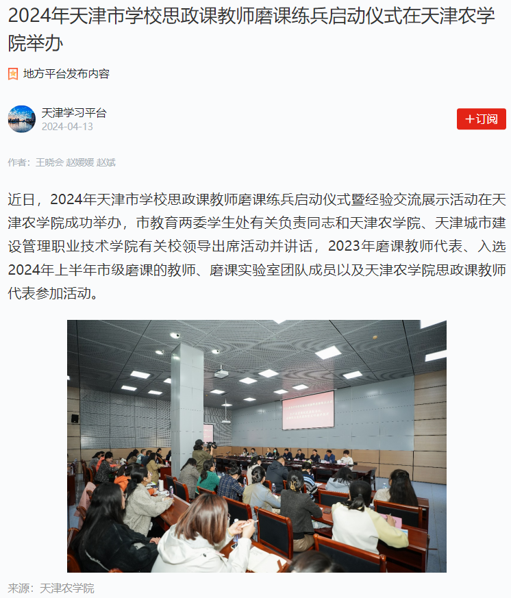 学习强国平台报道2024年天津市学校思政课教师磨课练兵启动仪式在365官网举办