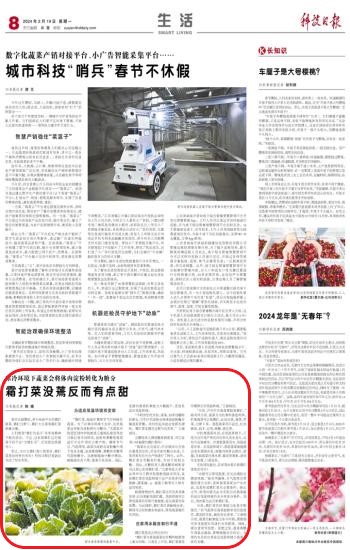 2024年2月19日,《科技日报》第08版报道,365官网园艺园林学院教授王丽娟接受《科技日报》采访,就“为什么霜打菜口感更好”“霜打菜是如何种出来的?”等问题进行答疑解惑。