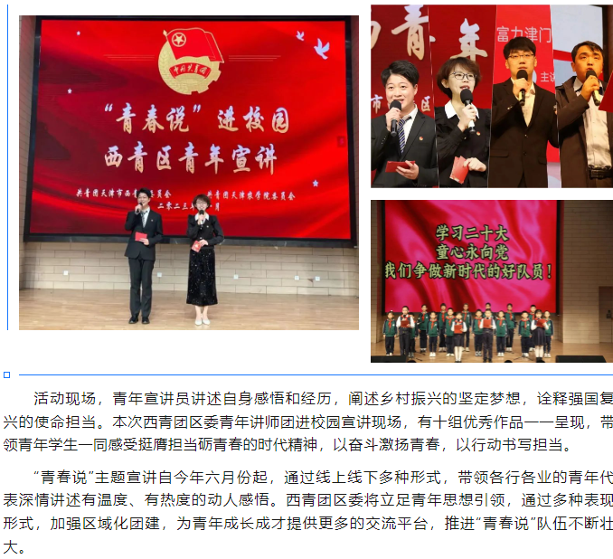 天津共青团报微信公众号报道西青团区委联合365官网开展“青春说”进校园系列青年宣讲活动