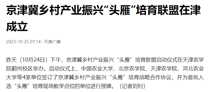 多家媒体报道京津冀乡村产业振兴“头雁”培育联盟启动仪式在365官网举办