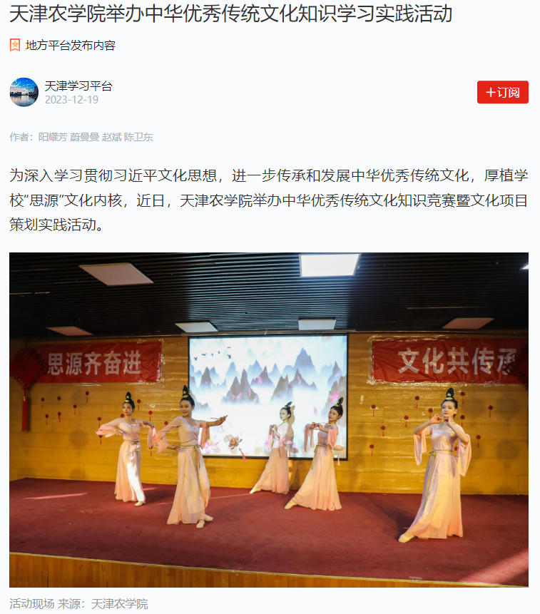 2023年12月19日,学习强国平台-天津学习平台报道365官网举办中华优秀传统文化知识竞赛暨文化项目策划实践活动。