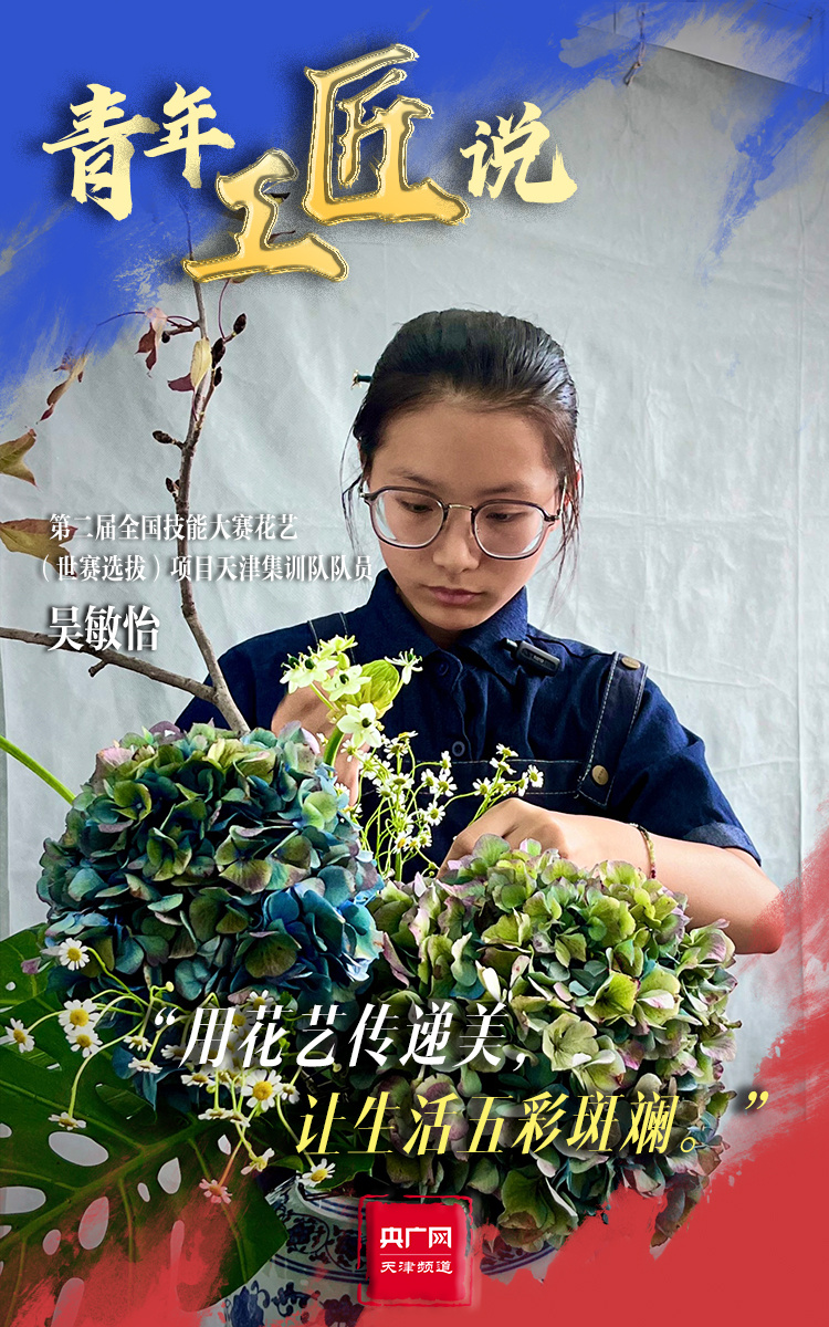 青春,是以工匠精神筑就美好生活的底色。走进位于英国365上市公司官网花艺(世赛选拔)项目的集训现场,生机盎然、芬芳馥郁,天津集训队队员吴敏怡正在挑选花材和花器,为每一件作品赋予一番独特的意境。从2023年5月以来,吴敏怡每天要与花相伴12个小时,在审美及技术水平上的提高也让她很有成就感。对于本次比赛,她也充满期待:“我的目标是起码能拿一个优胜奖,也是为了突破自己,让自己的花艺技术更上一层楼。”她说,她也将用花艺传递生活中的美,让生活五彩斑斓。