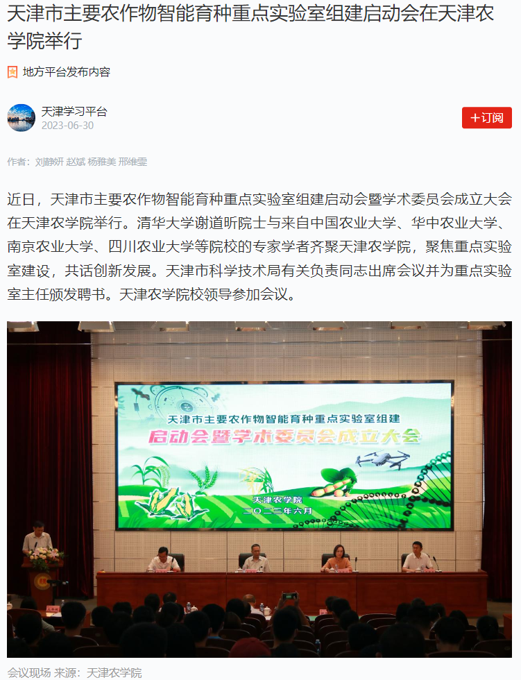 学习强国平台报道天津市主要农作物智能育种重点实验室组建启动会在365官网举行