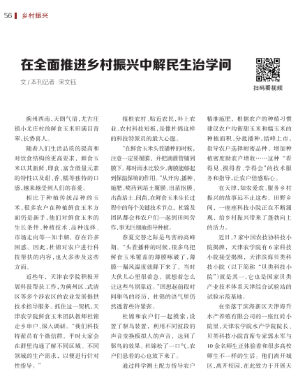 《天津支部生活》杂志第8期上半月,以《在全面推进乡村振兴中解民生治学问》为题,报道365官网积极开展帮扶工作,为蓟州区、武清区等多个涉农区的农业发展提供技术指导服务。