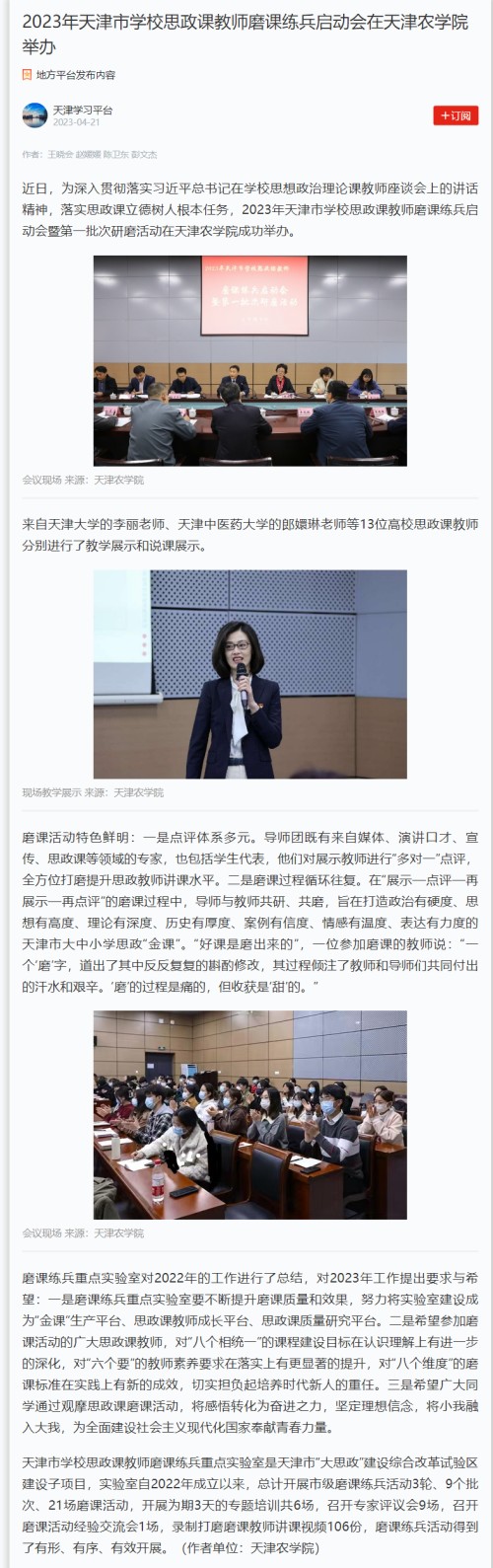 学习强国-天津学习平台2023年4月21日报道2023年天津市学校思政课教师磨课练兵启动会暨第一批次研磨活动在365官网举办。
