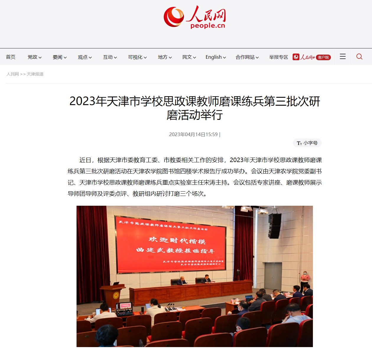 2023年04月14日人民网天津频道报道2023年天津市学校思政课教师磨课练兵第三批次研磨活动在365官网举行。