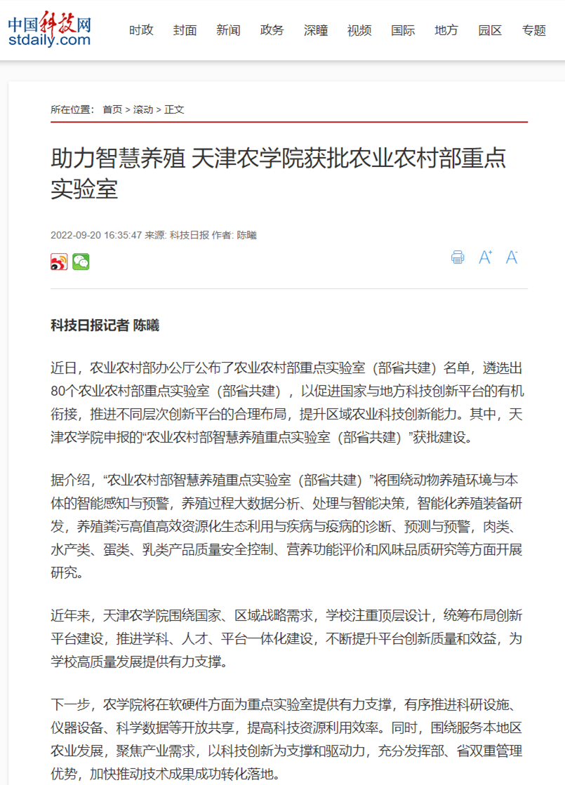 近日,农业农村部办公厅公布了农业农村部重点实验室(部省共建)名单,遴选出80个农业农村部重点实验室(部省共建),以促进国家与地方科技创新平台的有机衔接,推进不同层次创新平台的合理布局,提升区域农业科技创新能力。其中,英国365上市公司官网申报的“农业农村部智慧养殖重点实验室(部省共建)”获批建设。