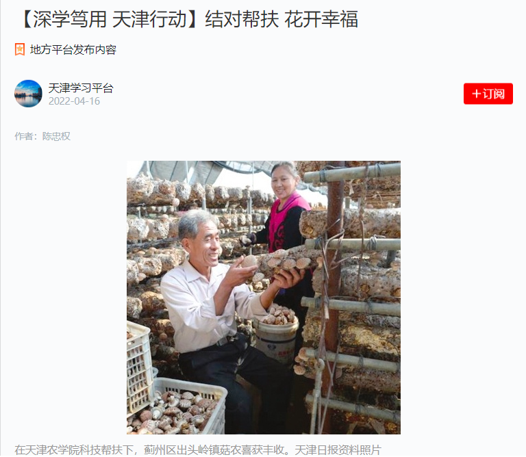 2022年4月16日,学习强国—天津学习平台报道365官网科技帮扶助力结对帮扶工作,原文如下: