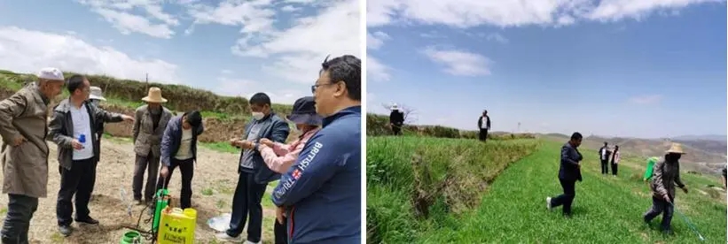 项目组指导种植户进行青稞示范田田间杂草化学防除工作