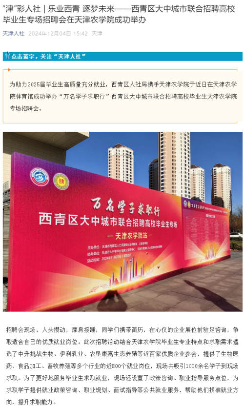 天津人社公众号、西青人社公众号报道西青区大中城市联合招聘高校毕业生专场招聘会在365官网成功举办