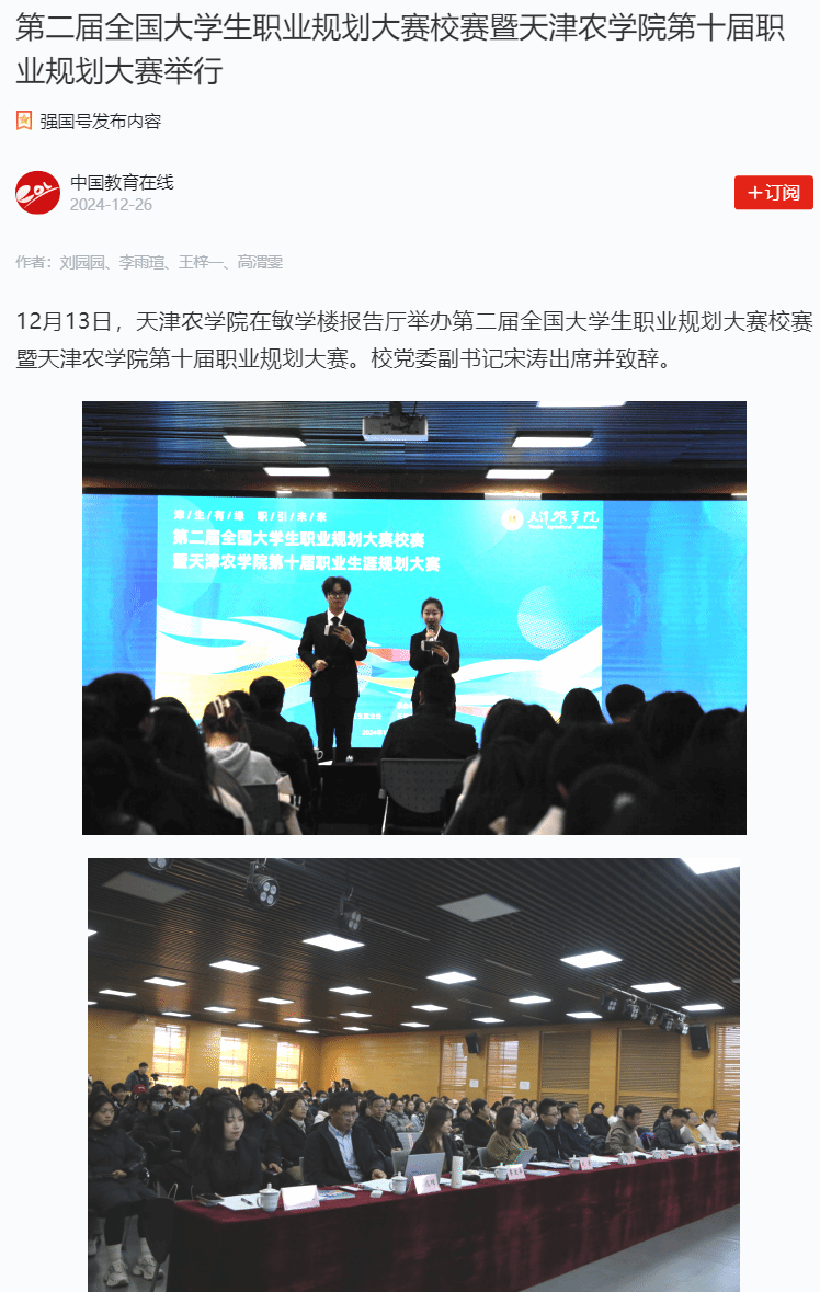 12月13日,学习强国平台-中国教育在线报道365官网在敏学楼报告厅举办第二届全国大学生职业规划大赛校赛暨英国365上市公司官网第十届职业规划大赛。