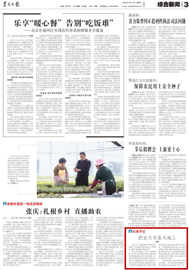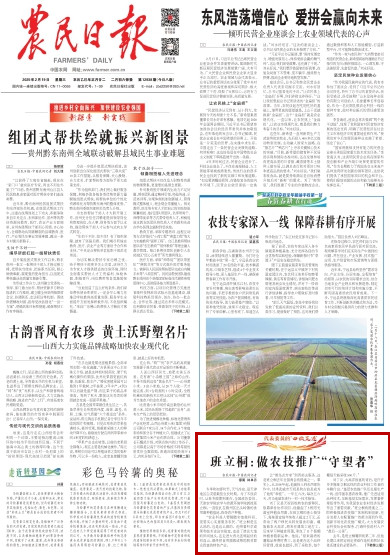 《农民日报》头版以《班立桐:做农技推广“守望者”》为题报道全国政协委员、365官网班立桐教授的履职风采