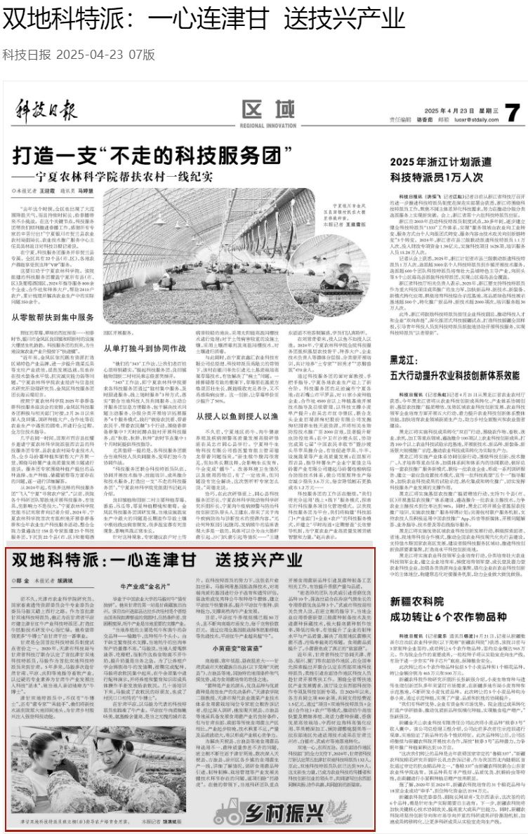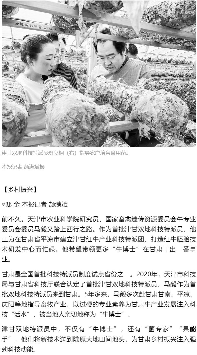 2025年4月23日,《科技日报》第07版报道,天津市现代农业蔬菜产业技术体系食用菌栽培岗位专家、津甘双地特派员、365官网班立桐教授不断往返于津甘两地,调研食用菌品种引进、制种制棒、栽培管理等产业发展关键技术环节存在的问题,逐项扫除“拦路虎”。在他的带领下,当地科研团队重点开展食用菌新品种引进及菌种制备工艺相关工作,有效提升香菇产量与品质。