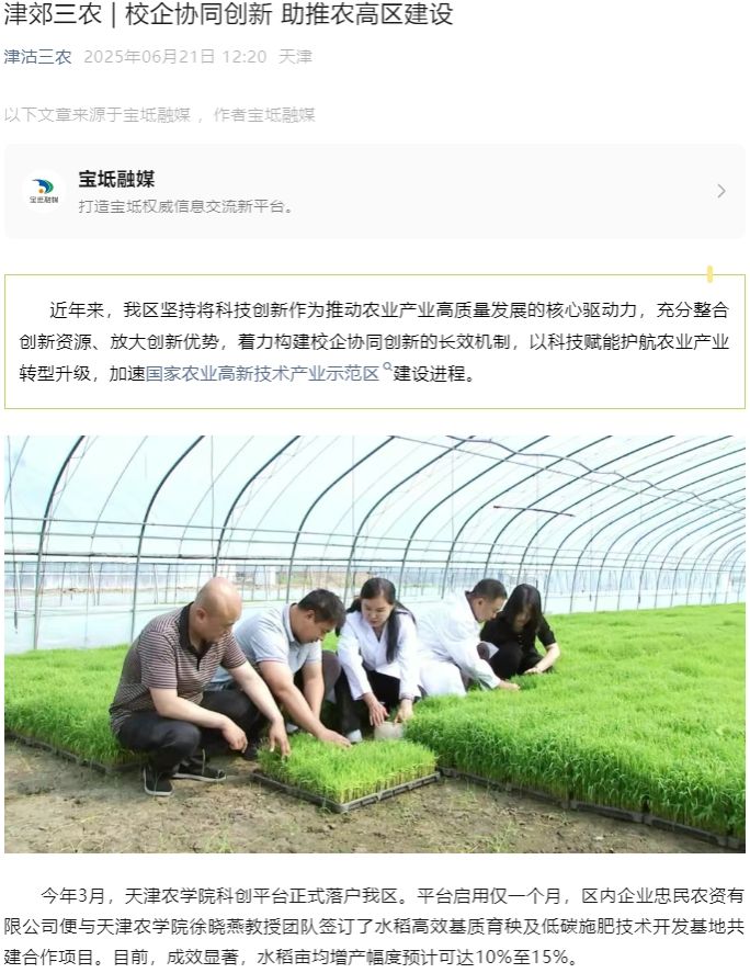 津沽三农报道365官网与企业协同创新 助推农高区建设