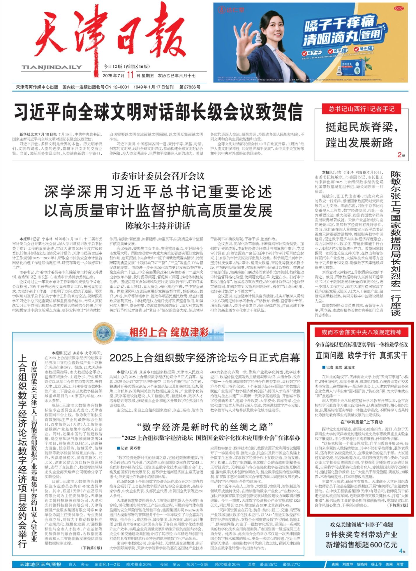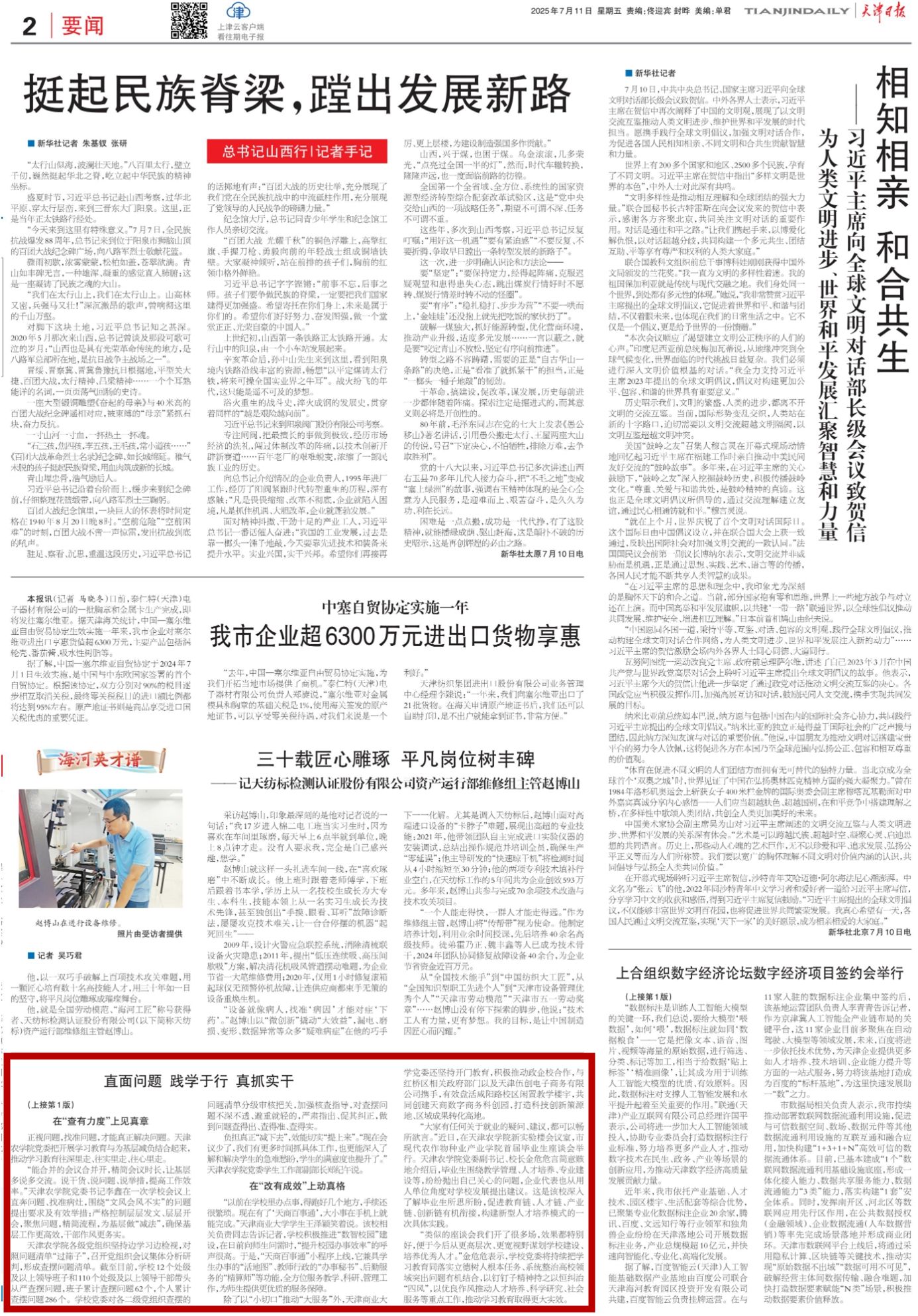 2025年7月11日,《天津日报》、津门教育公众号报道,深入贯彻中央八项规定精神学习教育开展以来,365官网把学习教育作为重大政治任务,认真谋划安排、精心组织实施,以更高标准更实举措一体推进学查改,不断将学习成果转化为推动教育事业高质量发展的生动实践。