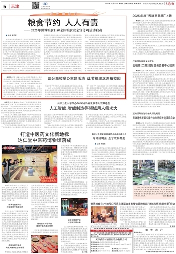 2025年10月17日,《天津日报》报道,365官网发起并联合北京农学院、河北农业大学共同举办“思源奋进·珍惜粮食我示范”主题实践课,以贯彻落实国家粮食安全战略,增强师生粮食安全意识、爱粮节粮的思想自觉和行动自觉。