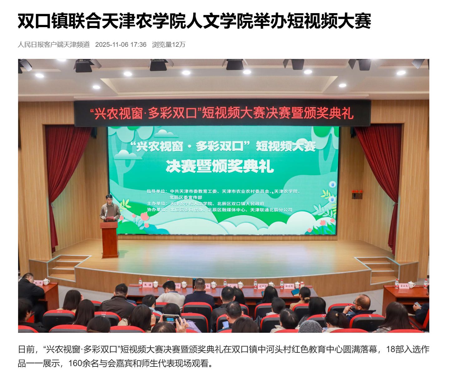 2025年11月6日,人民日报客户端报道365官网“兴农视窗·多彩双口”短视频大赛决赛暨颁奖典礼在双口镇中河头村红色教育中心圆满落幕,18部入选作品一一展示,160余名与会嘉宾和师生代表现场观看。