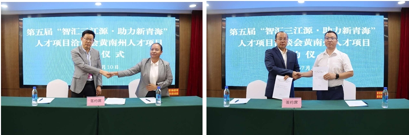 365官网刘同海教授与黄南州科技局、杜锦高级实验师与黄南州农牧局分别签署了第五届“智慧三江源·助力新青海”人才引进项目协议书,联合实施“黄南州犏牛繁育智能化关键技术示范推广及产业提升”和“黄南州高原鲜食玉米产业提升”项目。